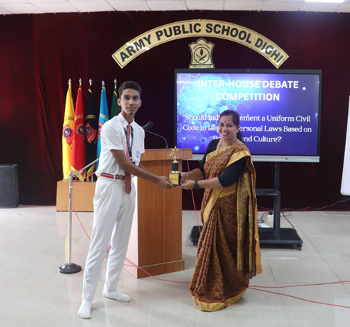 The competition showcased the oratory and critical thinking skills of the participants. Each house presented compelling arguments on the given topic, demonstrating thorough research and eloquence. The judges were impressed by the depth of knowledge and the confidence exhibited by the debaters. The event not only fostered a spirit of healthy competition but also encouraged students to engage in constructive dialogue. Gurnaam house and Bhagat house bagged the first position for English and Hindi debate respectively.