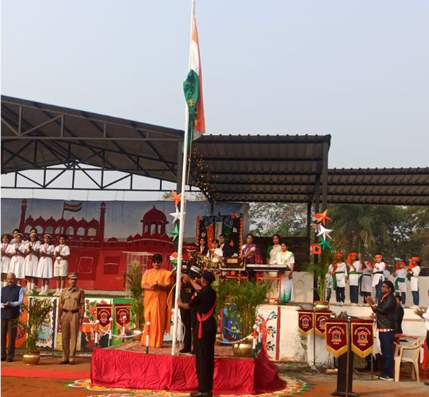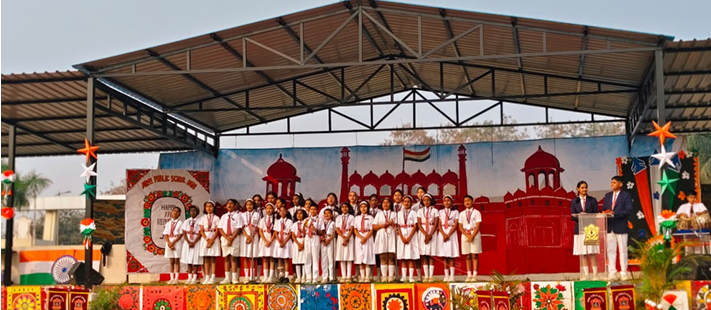 This year’s Republic Day theme focused on the 150th anniversary of the national song ‘Vande Mataram’, highlighting its historical and emotional significance in India’s freedom movement. The celebration began with soulful renditions of ‘Saare Jahan Se Accha’ and ‘Aye Vatan Mere’ by primary wing students, setting a deeply patriotic tone.
